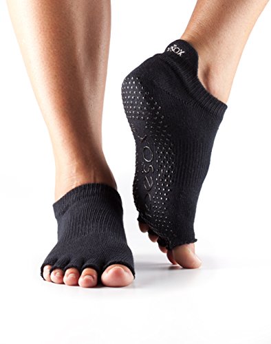 ToeSox Women's Low Rise Half Toe Grip Socks (Black) Large
