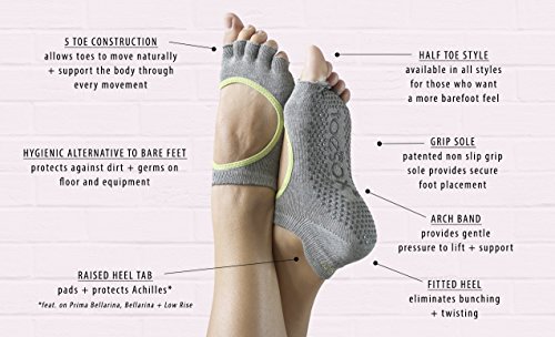 - GRIP: ToeSox Patented grip sock ensures non slip and provides secure foot placement during all bare foot fitness practices