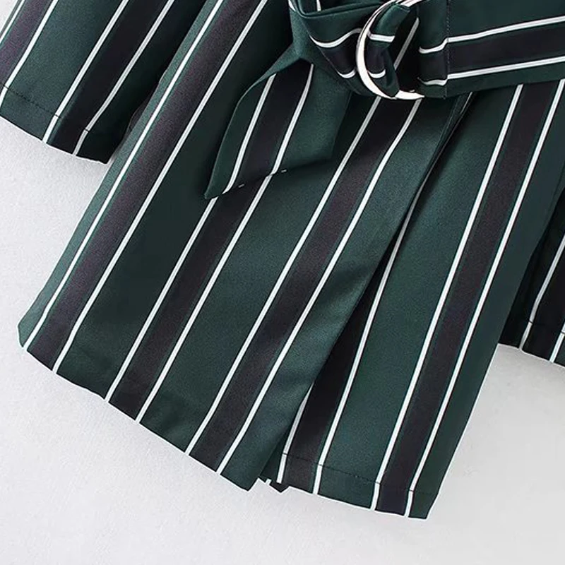 Item Type: Jumpsuits & Rompers Gender: Women Brand Name: Bella Philosophy Fabric Type: Chiffon Material: Polyester Pattern Type: Striped Model Number: YD Decoration: Lace Up Type: Playsuits Fit Type: Loose Style: Casual Color: Green Size: S M L Sku: JA090