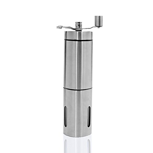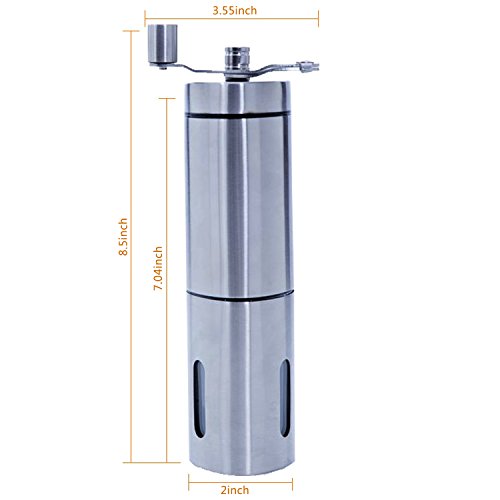 Most New Design Manual Coffee Grinder Burr:The Folding Handle Can More Savings In Kitchen Space And Your Valuable Time.Have More Time To Enjoy Your LifeShow Design The Coffee You Want:Using Our Manual Coffee Grinder ,You Can Quickly And Easily Make Your Own Design Of Coffee. Great Look ,Effort To Design:Our Manual Coffee Grinder For French Press Not Only Have Great Look And The Appearance Of The Design Makes You More Effort. Prevent The Injured Interface:At The Interface We Installed The Protective Layer Of Plastic,Prevent Use Our Manual Coffee Grinder For Espresso Injured. Rest Assured The Protection:Our Manual Coffee Grinder Conical Conical Burr Mill Have FDA Certificate,So Our Customer Do not worry About Quality Problems. Specifications: Name: Portable Coffee Grinder Color: stainless steel Material: stainless steel, ceramic, acrylic and plastic Style: Manual Item Weight:0.27kg Capacity:80ml coffee powder Applicable: Indoor & Outdoor Package Include: 1 x manual coffee grinder 1 x removable hand crank 1 x color boxFeature