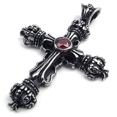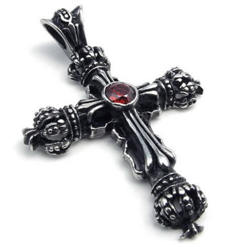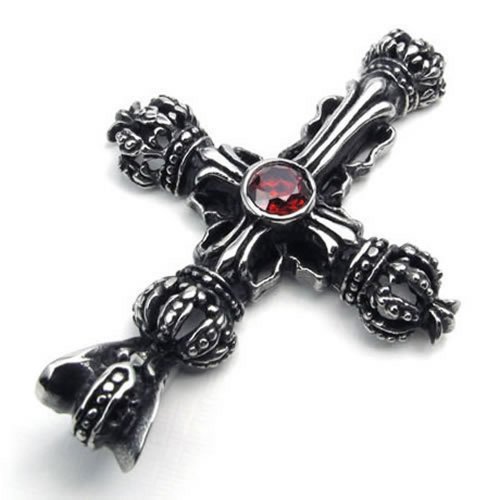 -. Title : KONOV Stainless Steel CZ Cross Mens Womens Pendant Necklace, Red Black, 24 inch Chain