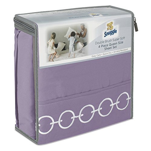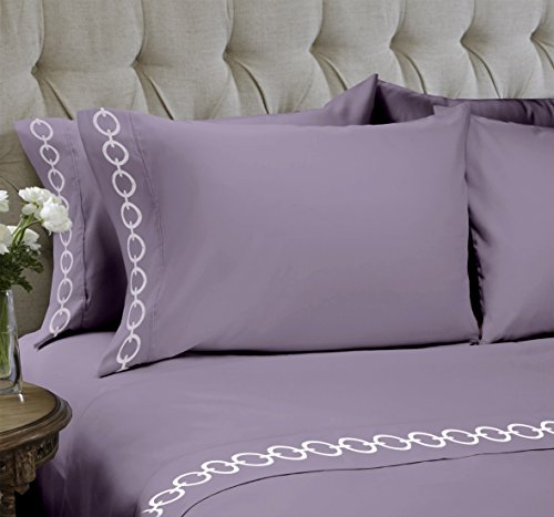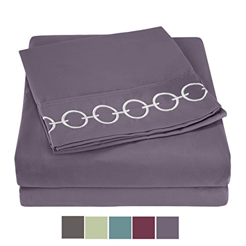 Sheet Sets Ultra Soft Double Brushed Microfiber By Snuggle - Wrinkle Resistant, Easy Care, Snuggly Soft - King, Purple Ash, Chain Embroidered
