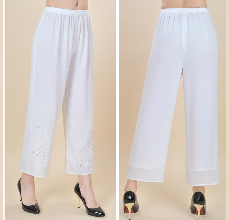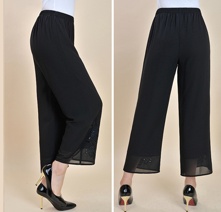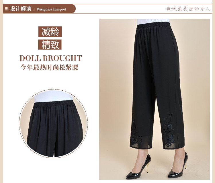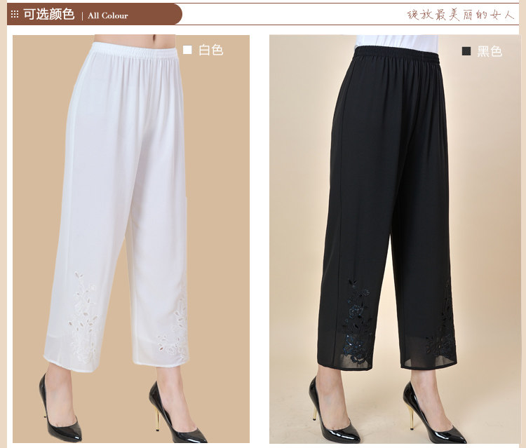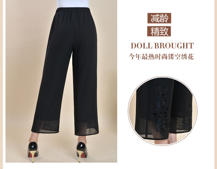 中老年九分裤女 夏款妈妈装大码宽松休闲雪纺松紧裤高腰女裤