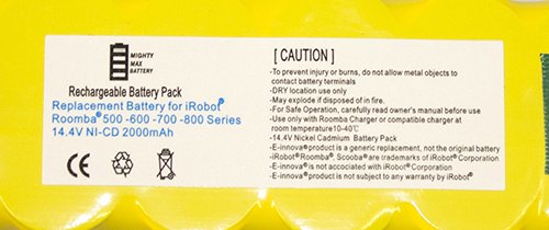 -. Feature : Easy to charge and connect APS battery compatible with all Roomba FloorVac models / Replacement Battery for iRobot Roomba 500 600 700 Series Vacuum Cleaner / 14.4V 2.0AH NiCD Battery / Mighty Max batteries are made with the highest quality materials. / 1 Year Warranty