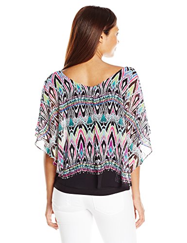 Rafaella Women's Petite Colorful Ethnic Ikat Print Chiffon Top