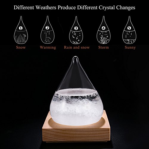 Note : the Storm Glass may need one or two weeks for the crystal to stabilize and adapt to the environment. If you want to see the test result, can be placed in the refrigerator frozen half an hour to an hour, take a look at the change effect