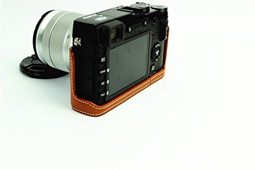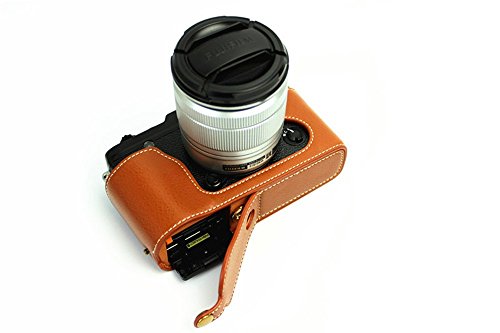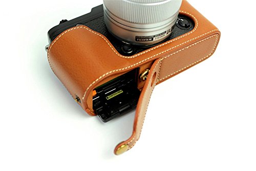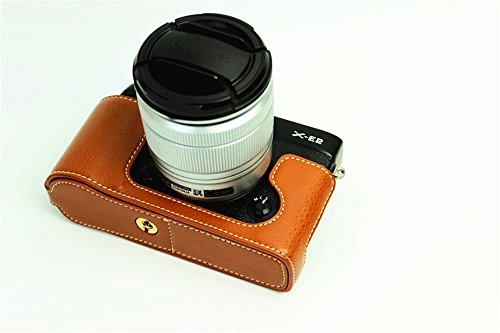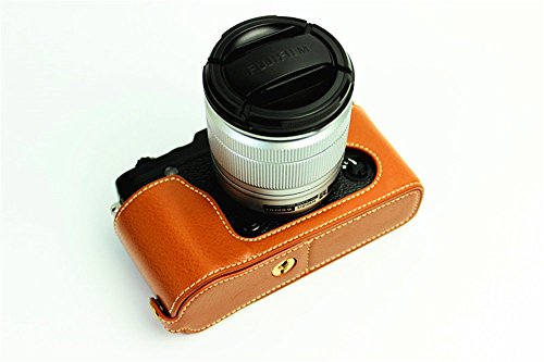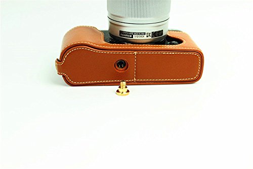 BolinUS Handmade Genuine Real Leather Half Camera Case Bag Cover for Fujifilm XE1 X-E1 XE2 X-E2 Opening Version + Hand Strap -Brown