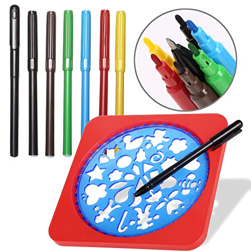 - High quality drawing stencil kit including 6 stencils with variety of shapes, 6 colored pens , 6 pieces of A4 paper and 1 pen.