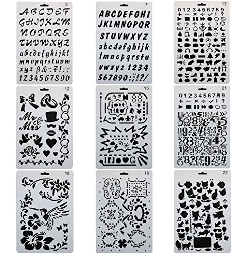 9 Pcs different style stencils (1 pieces in each design).