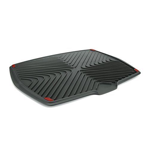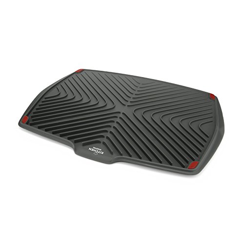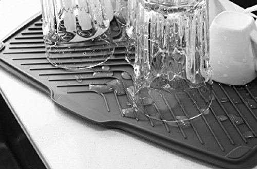 -. Feature : Ergonomic design for easy lifting. Unique grooves designed for quicker draining. / Large 15 x 11 Inch drying surface. Will fit most dish racks. Non-slip rubber feet can be removed for easy cleaning. / Dual purpose, slanted spout on one side for easy draining and the other side gather the water until you are done. / Can also be used for draining fruits and vegetables after washing. / FDA approved, BPA Free, Dishwasher Safe, One year warranty from Kitchen Maestro.