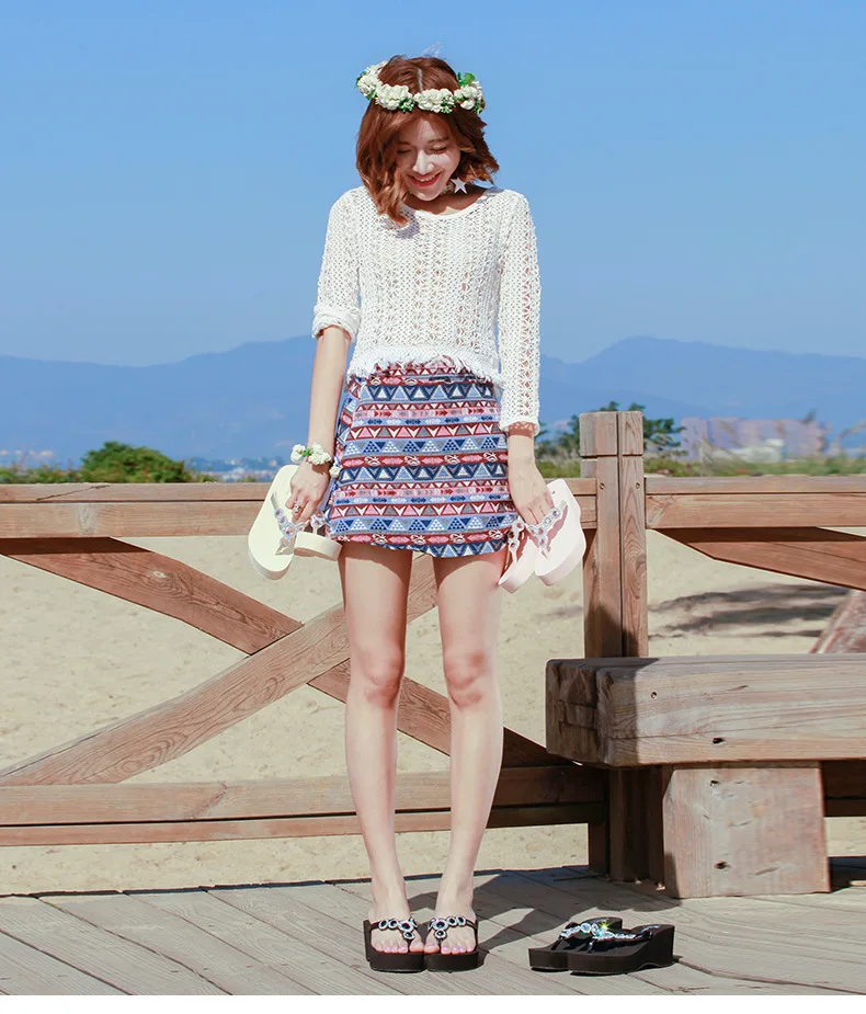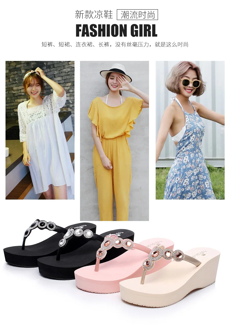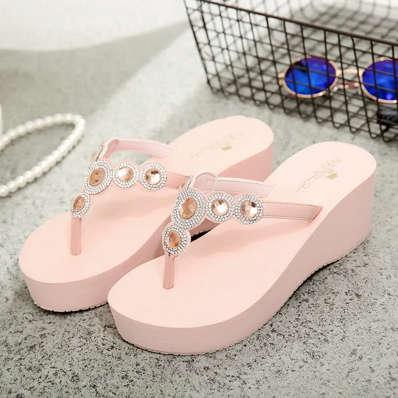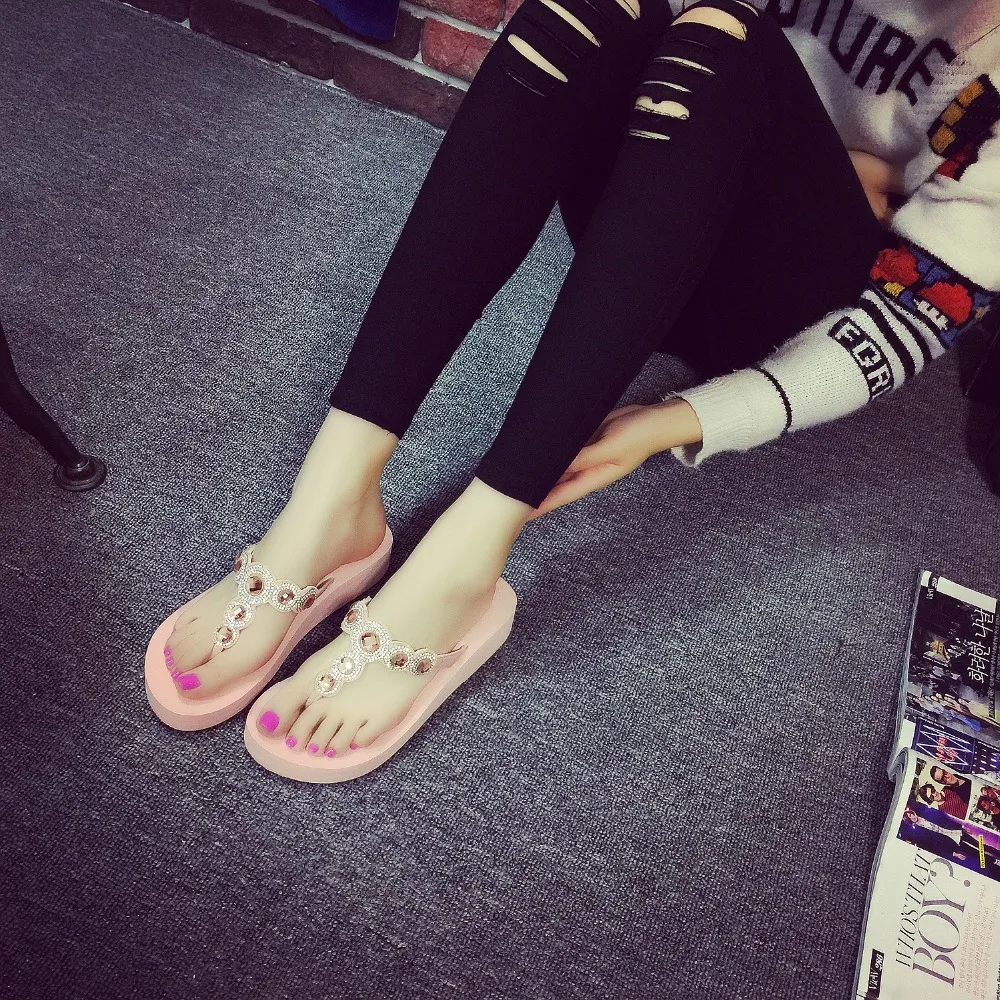 Women Beach Shoes:Rhinestones Thick-Bottomed Flip Flops