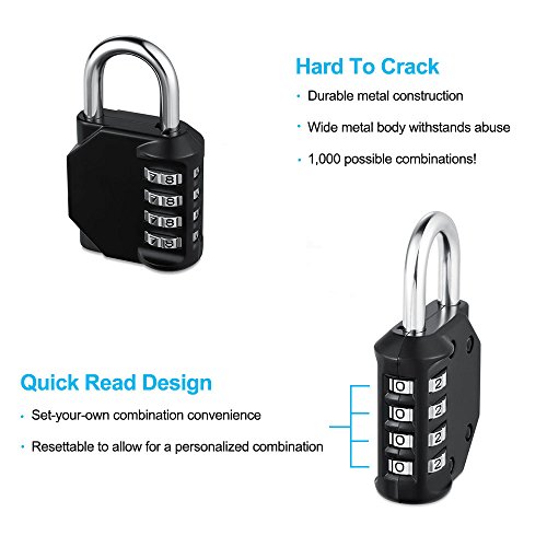 Combination Lock, CJSJ 4 Digit Padlock for School, Luggage Suitcase Baggage Locks, Filing Cabinets, Gym & Sports Locker, Toolbox, Fence, Case, 1 pack