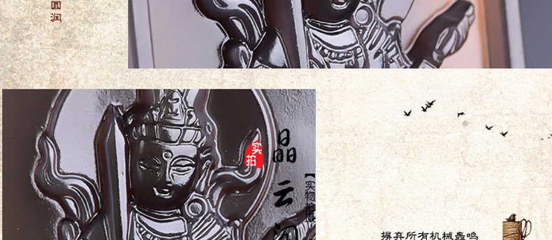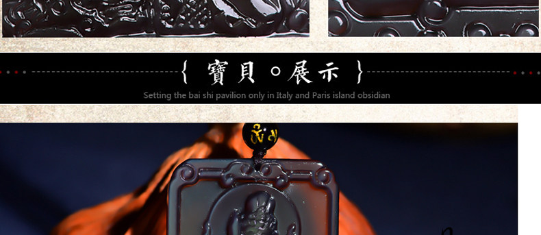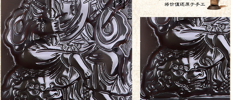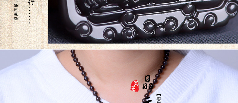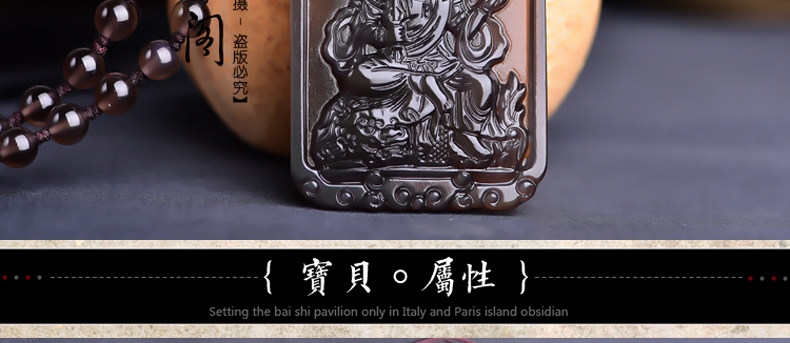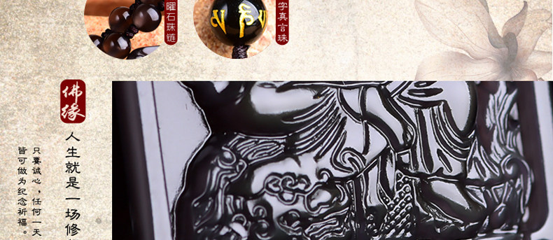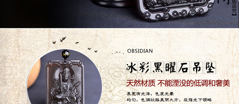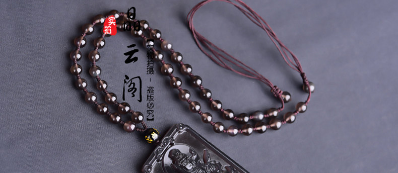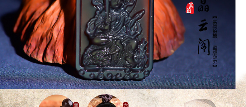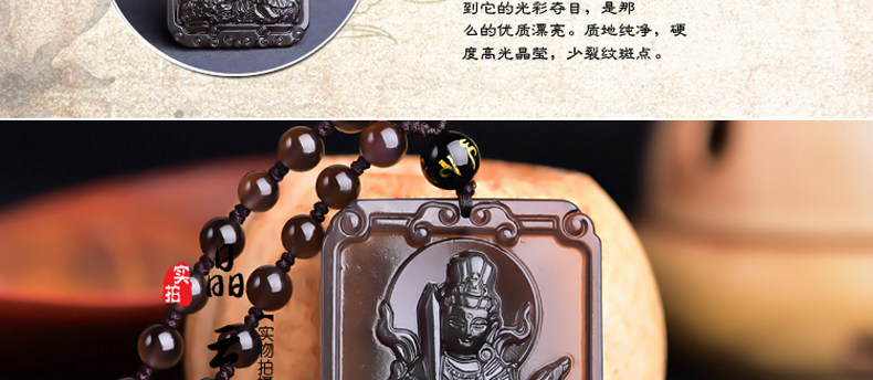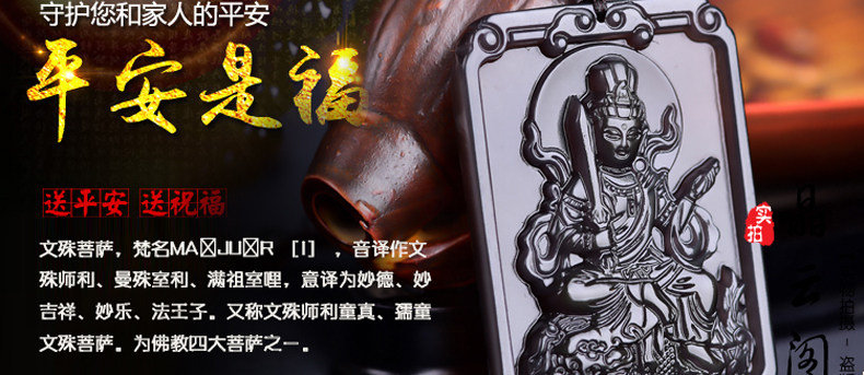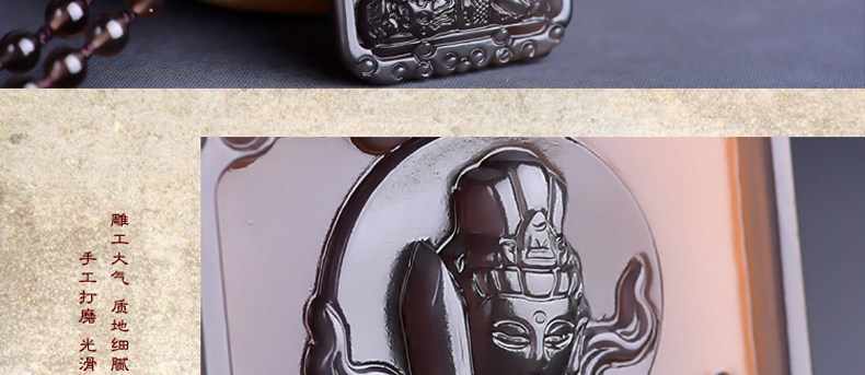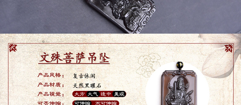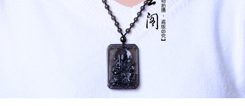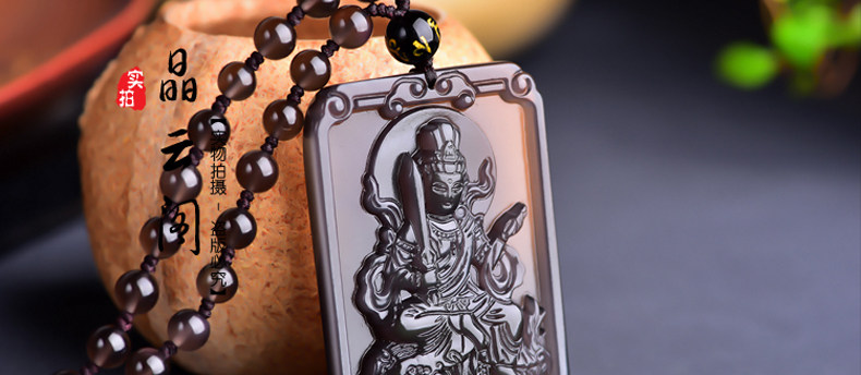 开光天然冰彩黑曜石文殊菩萨 生肖兔本命佛守护神吊坠男女项链