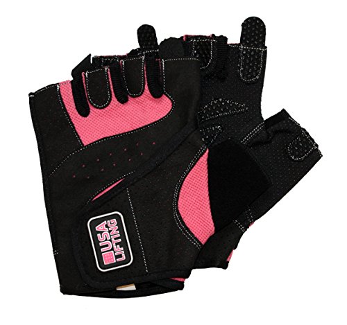 Studio : USA Lifting Publisher : USA Lifting Binding : Misc. Product Description The original USA Lifting weight lifting gloves bring comfort, protection and design to your workout. PRODUCT FEATURES -Neoprene padding and double stitching on palm for added support and comfort -Breathable mesh design minimizes sweating -1/2 finger length -Fully adjustable at wrist for perfect fit -Neoprene flaps on two fingers provide extra grip and control for heavy lifts - Now offered in various colors! 0