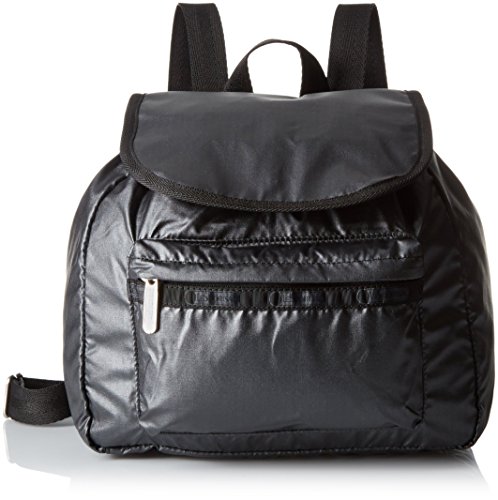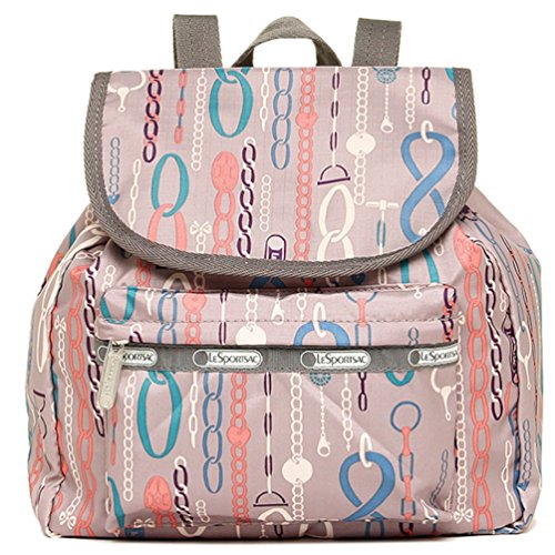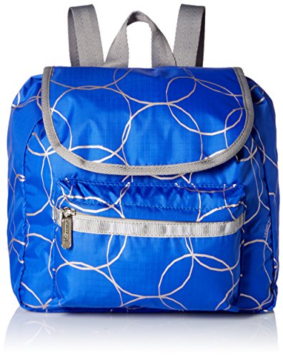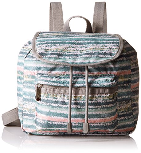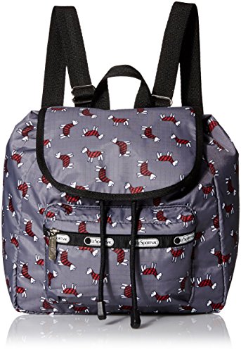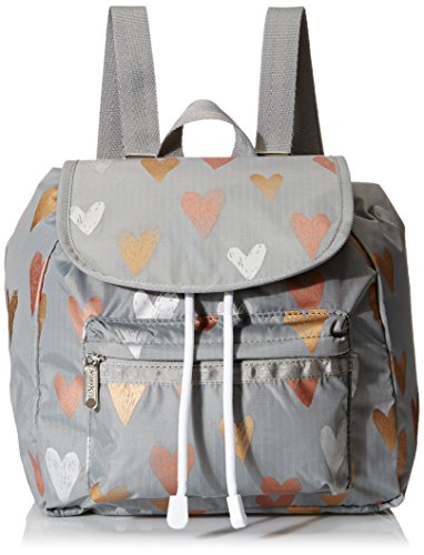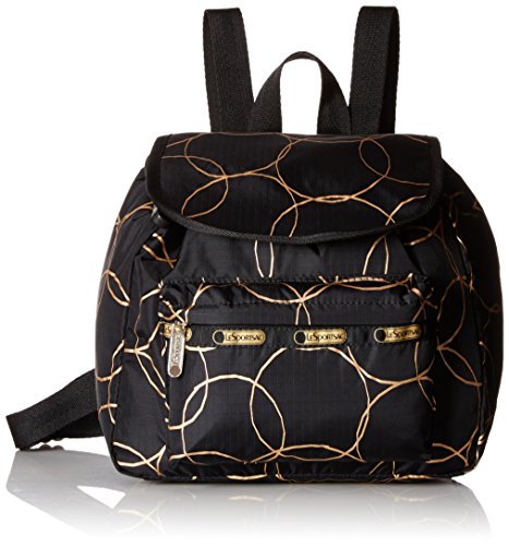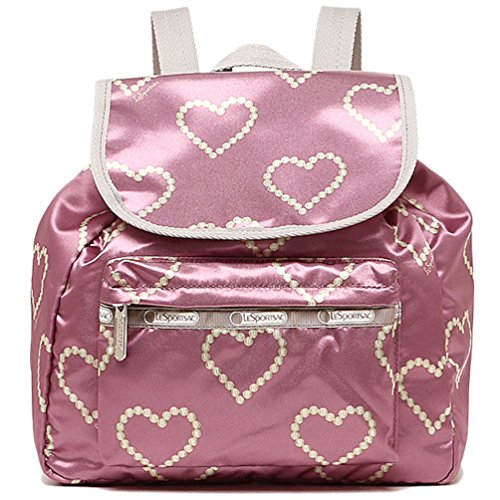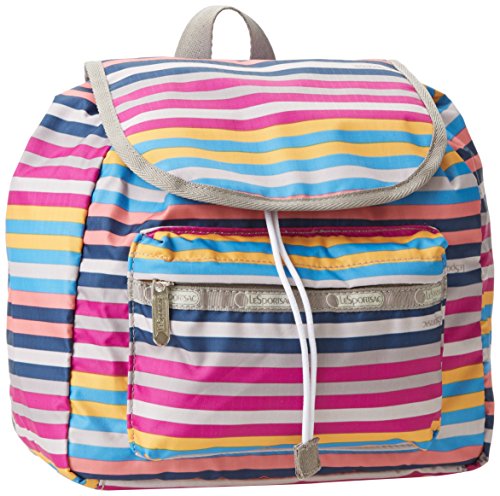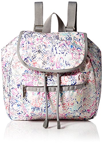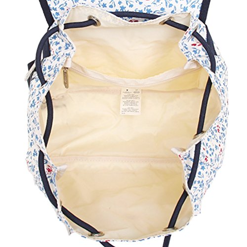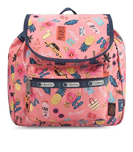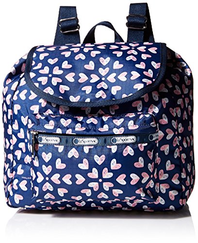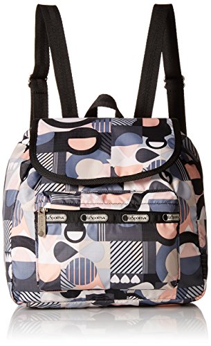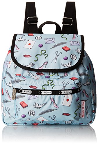 A scaled-down Liberty for LeSportsac backpack with a mix of floral prints. The magnetic top flap lifts to reveal the drawstring-cinched top line. Lined interior with 1 zip pocket and 1 patch pocket. Exterior pouch pocket. A back zip opens to the interior for easy headphone access. Locker loop and adjustable shoulder straps.