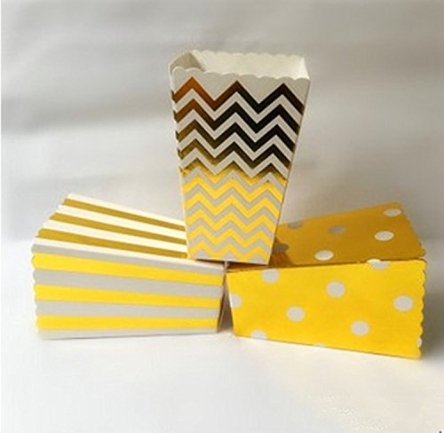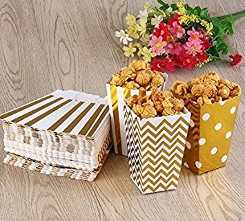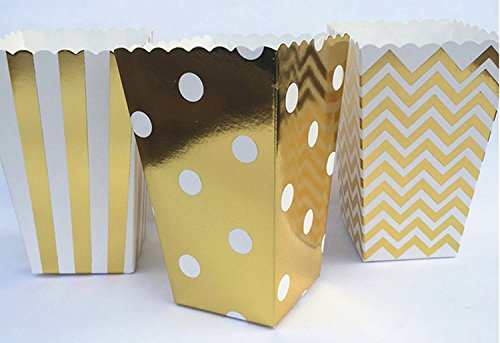ASIBT 90Pcs Popcorn Boxes,Popcorn Favor Boxes Cardboard Candy Container,Gold Wave Pattern(30pcs), Stripe(30pcs) and Polka Dot(30pcs)