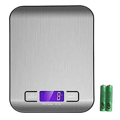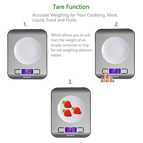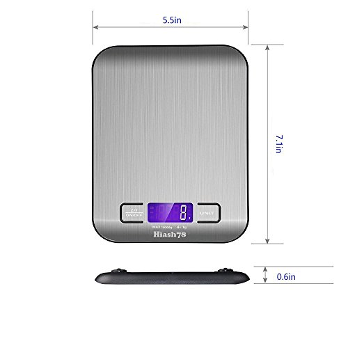 Hiash Digital Kitchen Scale Portable Multifunction Food Scale 11 lb 5 kg Stainless Steel Platform with LCD Display and Tare Function-Silver(2 AAA Batteries Included)