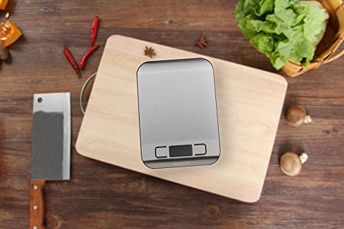 - ACCURATE MEASURE - Digital kitchen scale is provided with high precision sensors to offer you accurate weight all the time. 5kg/11lb capacity, 0.01oz/1g division, Perfect for baking, cooking, postage and jewelry.