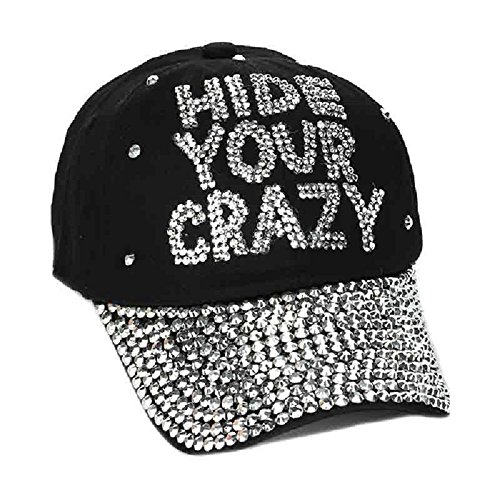 Product DescriptionThis Hide Your Crazy bling rhinestone hat cap is black and adjustable.0