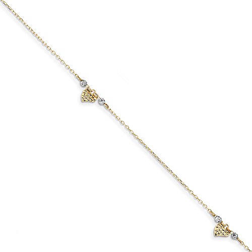 -. Binding : Jewelry -. Brand : The Black Bow -. Color : Yellow -. Department : womens -. Feature : Solid 14k two-tone gold design / Polished and diamond-cut finish / Adjustable 10 to 11 inch length / Average item weight is 1.08 grams / Includes our custom gift box -. Label : The Black Bow -. Manufacturer : The Black Bow -. Model : A8810 -. MPN : A8810 -. NumberOfItems : 1 -. PackageQuantity : 1 -. PartNumber : A8810 -. ProductGroup : Jewelry -. ProductTypeName : FINENECKLACEBRACELETANKLET -. Publisher : The Black Bow -. Studio : The Black Bow -. Title : Black Bow Jewelry 14k Two-Tone Gold D/C Heart and Beads Cable Chain Anklet, 10-11 Inch