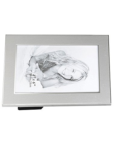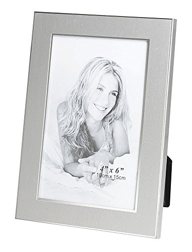 Upper Gifts Silver Metal 4"x6" Picture Frame - 2 Tone Brush Silver Finish with Shiny Inlay