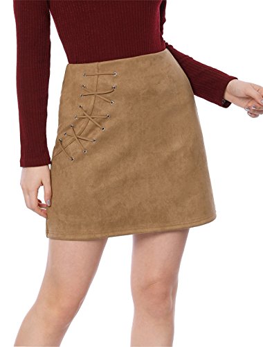 -. Title : Allegra K Women's Eyelet Lace-up Faux Suede A-Line Mini Skirt