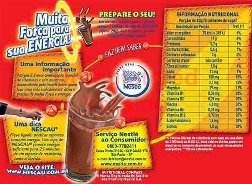 • Chocolate flavored powder drink mix Nescau from Nestlé
