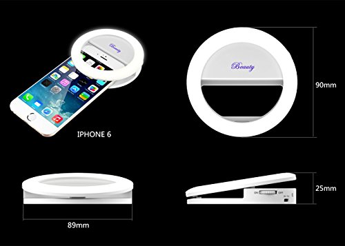 Demetory Ring Fill Light for iPhone 6s Plus/6s, iPad, Samsung Galaxy S6 Edge/S6, Galaxy Note 5, Blackberry, Sony Xperia, Motorola and All the Smart Phones (Pearl White)