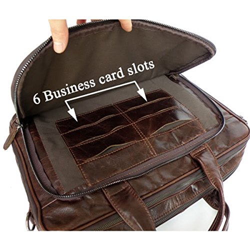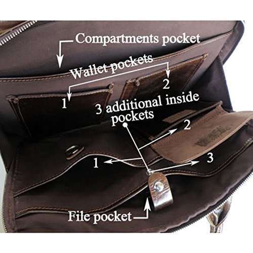 -. Feature : Dimensions: 14.8" l x2.5" w x11" h;free gift PU leather pencil case, get promotion code below / Material:Top Layer Real Cow Thick Leather,Additional detachable and adjustable shoulder strap / Big main compartment, Multi-function storage pocket(A4 papers, business cards slots,pens, cards, key, ect.) / Front pocket organization for all your business needs;Smart pocket slides over uP.R.Ight handles for easy mobility / Take it as laptop Briefcase, Shoulder bag(strap inside) or Messenger bag ,Full Grain Soft Genuine Leather.