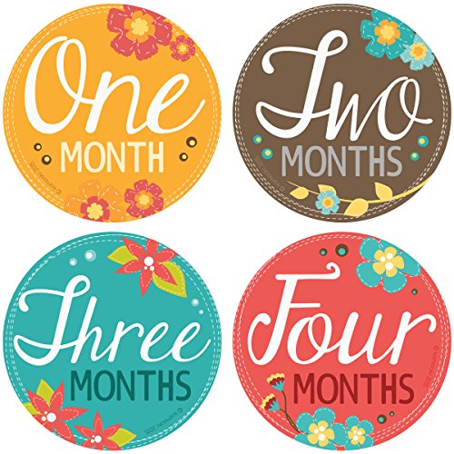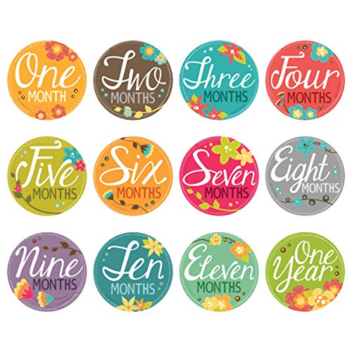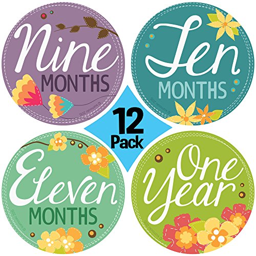 Original Stick'Nsnap(TM) 12 "Flowers Blooms" Pastel milestones monthly growth stickers. 3.25'' inch diameter. To put on bodysuit creeper bibs bottoms or ONESIE. Pastel colors. - Best Shower Gift!