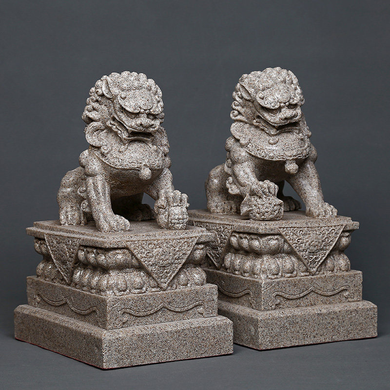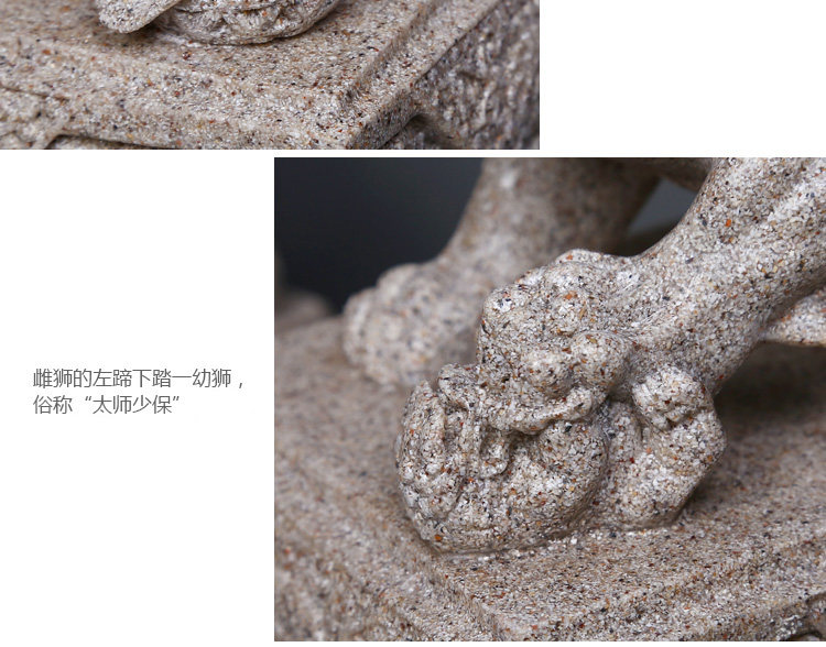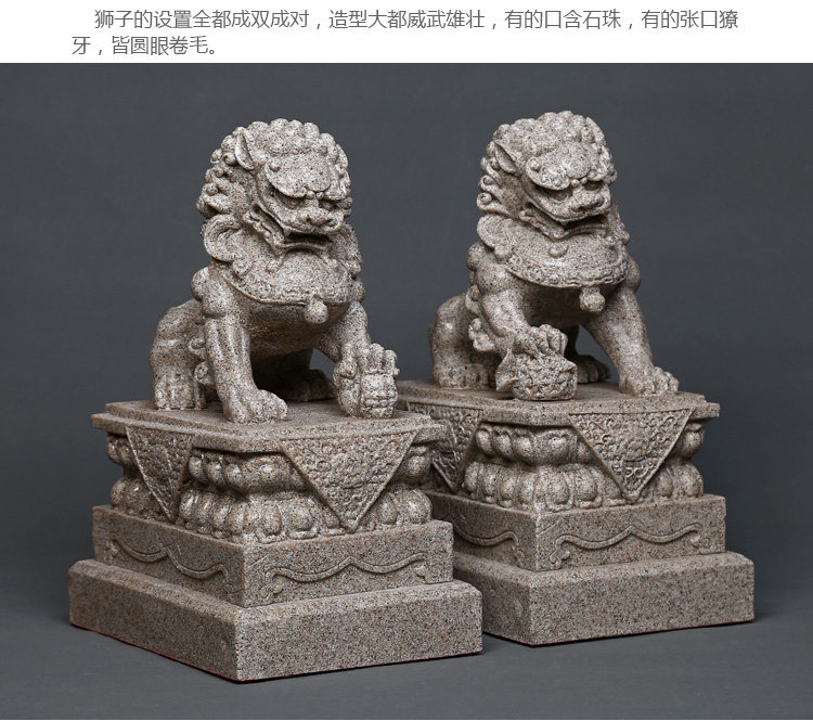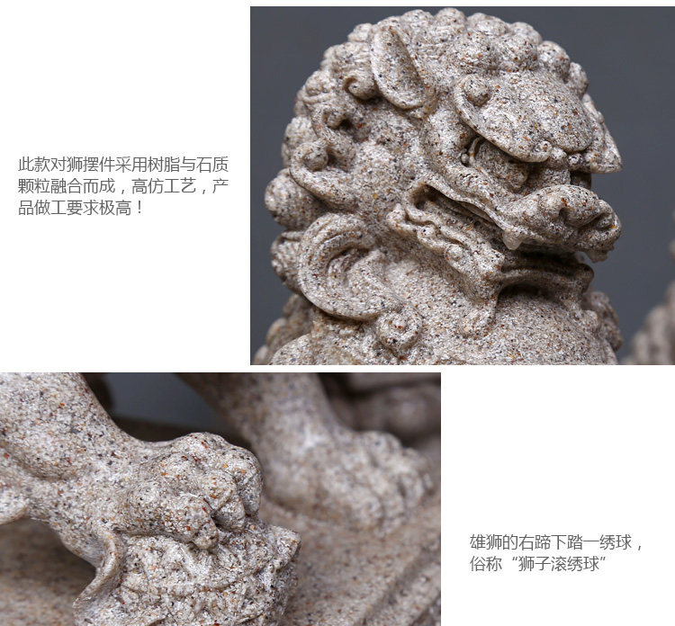 砂岩石狮子摆件 树脂狮子一对家居客装饰工艺品摆设