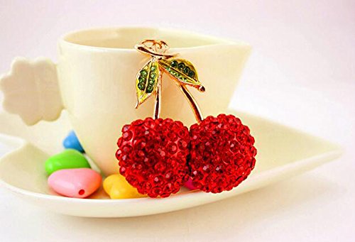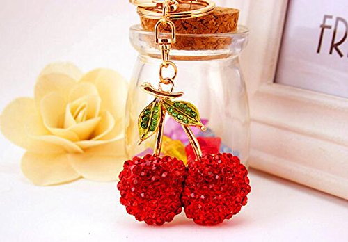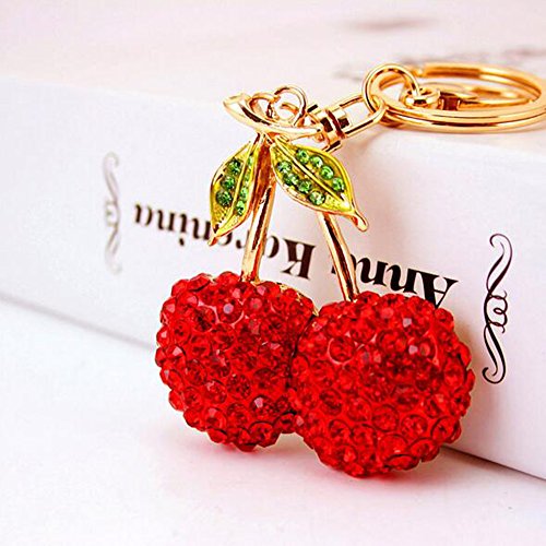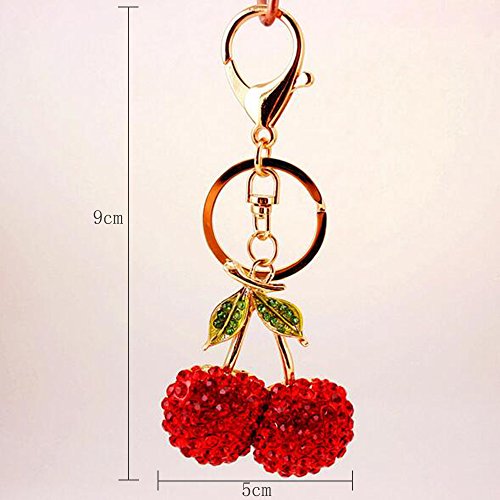 Jzcky Shzrp Cherry Fruit Leaves Crystal Rhinestone Keychain Key Chain Sparkling Key Ring Charm Purse Pendant Handbag Bag Decoration Holiday Gift