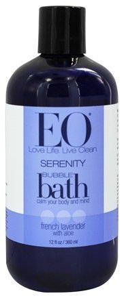 Studio : EO PRODUCTS Publisher : EO PRODUCTS Binding : Health and Beauty Product Description EO Products Bubble Bath Serenity French Lavender with Aloe Vera contains extracts of Hops and Fig, paired with timeless French Lavender essential oil. This serene bubble bath delivers tranquility to your skin and has the incredible scent of pure Lavender and the moisturizing properties of Hops and Fig.?EO's signature Organic Herbal Blend of Chamomile, Calendula, Aloe, and White Tea extracts support healthy skin while the Coconut-based cleansers leave your skin clean and happy. The timeless scent of Lavender delivers a serene bathing experience your skin won't want to live without. Have a serene moment alone every day. 0