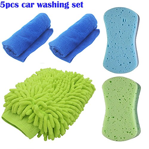 EEFUN 5 IN 1 House Cleaning Car Washing Kit, including Microfiber Waterproof Washing Mitt, Washing Compressed Sponge2, Cleaning Towel2, Multi-Use Kitchen Office Cleaning Tool, No Lint, No Scratch