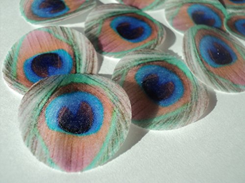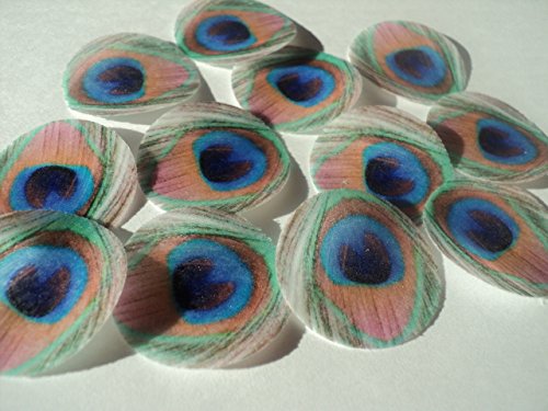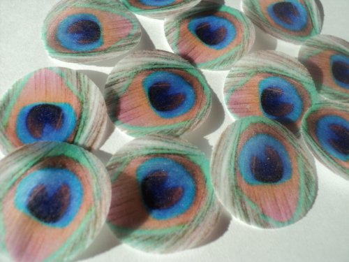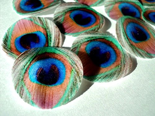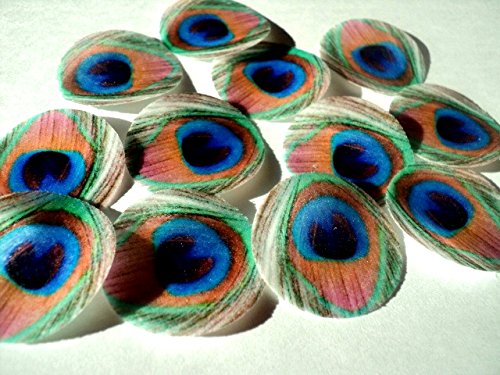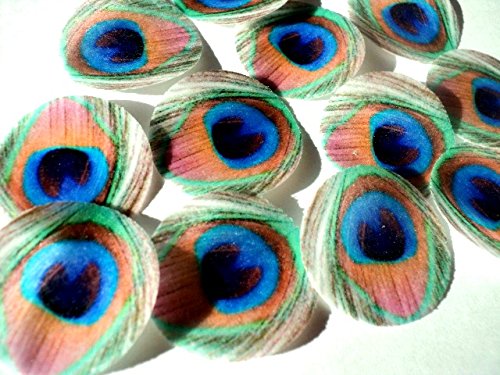 48 round very small 1" Feather Green Edible Decorative Wafer Paper Peacock Feathers © Wedding Cake Cupcake Toppers