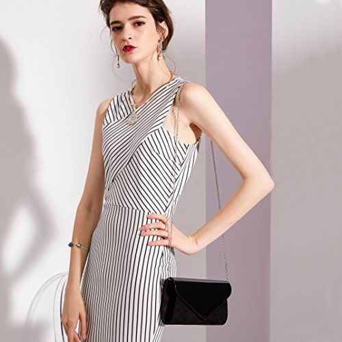 -. Feature : Elegant velvet clutch evening bag,Minimalist design and magnetic Snap highlight your style . / Magnetic snap closure,made from high quality PU leather with frosted glitters and silver-tone chain strap. / Dimension: 10 in (L) X 5 in (W) X 1.8in (H) . With 22"in removable chain / Inside polyester lining with one small pocket,Clutch by hand, tote or crossbody bag use / Unique design evening bags are perfect for night out, date, cocktail party, family reunion, prom, banquet and so on .