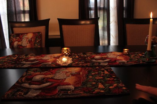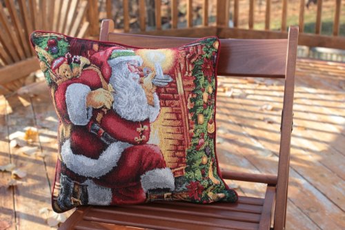 Tache Set of 2 Piece 16 X 16 Inches Tapestry Christmas Decorative Down the Chimney Santa Claus Decorative Accent Cushion Throw Pillow Cover