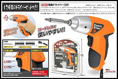 Includes: Main body x 1, Extension attachment x 1, Charging adapter x 1, Driver bit x 12 (Allen wrench x 3, Plus x 6, Minus x 3)
