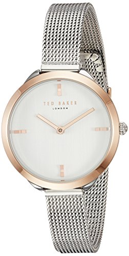 -. Binding : Watch -. Brand : Ted Baker -. Department : womens -. EAN : 0843218075251 -. Feature : Clean lines and a dazzling mesh bracelet keep the look effortlessly chic and decidedly polished whether worn for work or play. / A petite silhouette is complemented by a sleek dial where slim metal hands and bow-shaped indexes keep the look polished. / Quartz Movement / Case Diameter: 30mm / Water resistant to 50m (165ft: in general, suitable for short periods of recreational swimming, but not diving or snorkeling -. Label : Ted Baker -. Manufacturer : Ted Baker -. Model : TE15198009 -. MPN : TE15198009 -. PartNumber : TE15198009 -. ProductGroup : Watch -. ProductTypeName : WATCH -. Publisher : Ted Baker -. Studio : Ted Baker -. Title : Ted Baker Women's 'ELANA' Quartz Stainless Steel Casual Watch, Color:Silver-Toned (Model: TE15198009) -. UPC : 843218075251