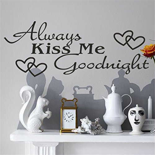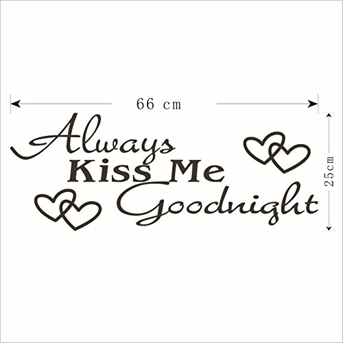 BIBITIME Saying "Always Kiss Me Goodnight" Wall Decal for Baby Room Nursery Lovers Bedroom 2 Double Hearts Sticker Valentines Day Best Expressing Emotion
