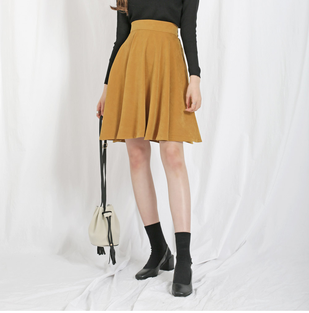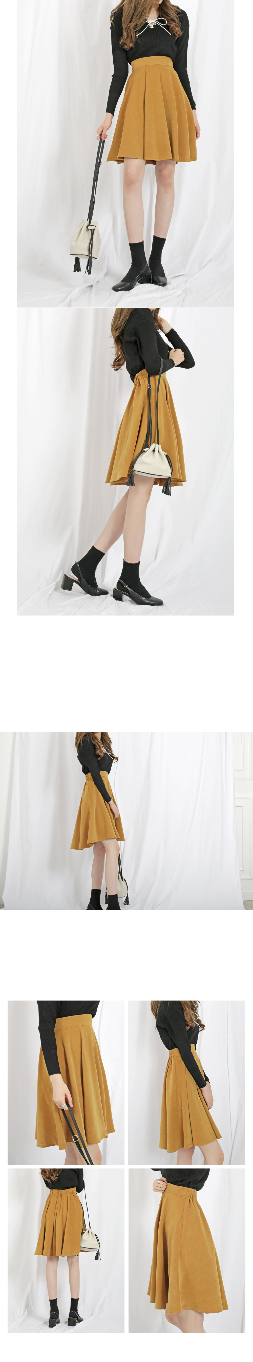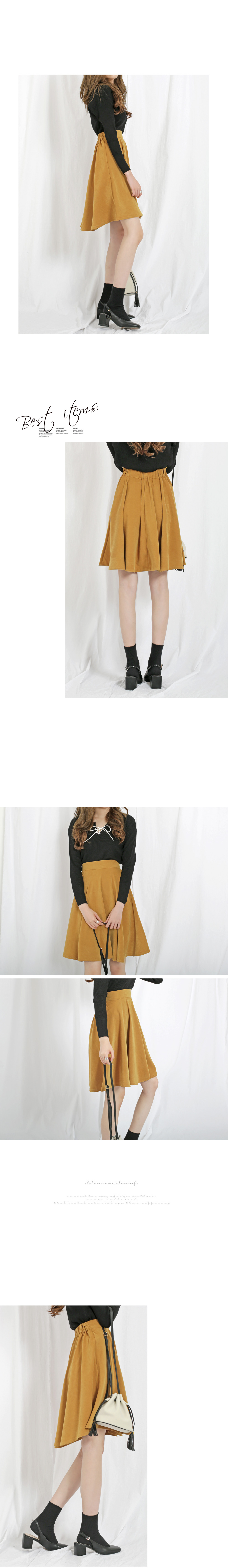 Banding Flare Midi Skirt Mustard Fall A Line Pleated Black Skirt Suit