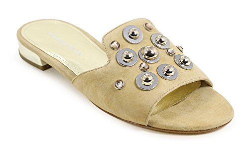 Studio : Donald J Pliner Publisher : Donald J Pliner Binding : Apparel Product Description Pair these wedge sandals with any bottom for the evening's perfect outfit. Womens. Suede leather upper. Stud embellishments. Easy slip-on style. Open toe. Leather lining with a lightly cushioned footbed. Leather outsole. 1" heel. 0.25" platform. 0