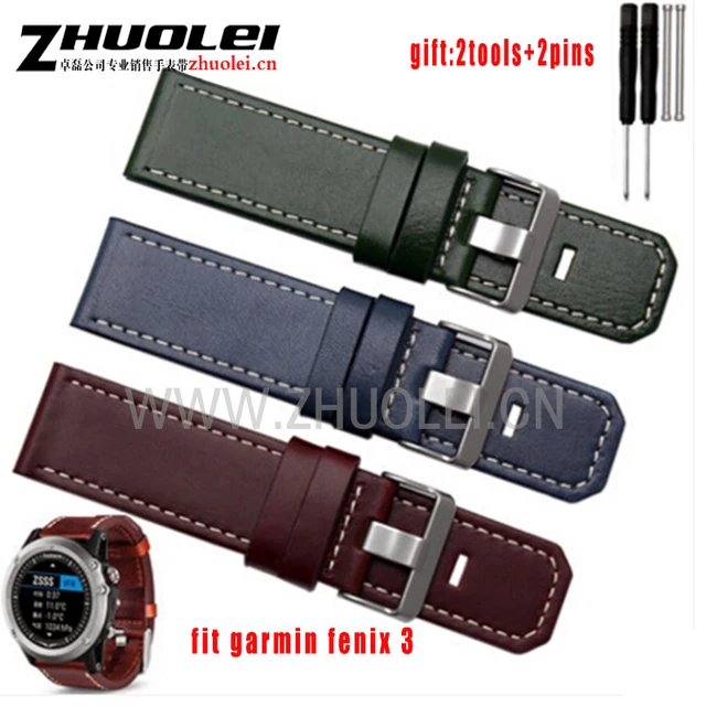 | [해외] 정품 가죽 26 미리메터 브라운 블랙 블루 그린 방수 시계 줄 교체 스포츠 Garmim Fenix3 손목 시계 스트랩 밴드 |