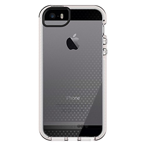 -. Binding : Wireless Phone Accessory -. Brand : Tech 21 -. Color : white -. Feature : A slim-fitting design with access to all features of the device / A transparent design displaying the original beauty of the device / A unique check design on the interior and smooth to touch on the outside / An advanced TPU formula renowned for its excellent flexibility and abrasive resistance / Scientifically proven impact material which absorbs and dissipates impact for iPhone SE -. Label : Tech 21 -. Manufacturer : Tech 21 -. PackageQuantity : 1 -. ProductGroup : Wireless -. ProductTypeName : WIRELESS_ACCESSORY -. Publisher : Tech 21 -. Studio : Tech 21 -. Title : Tech21 Evo Mesh Case For Apple IPhone SE IPhone 5/5S (Clear White)