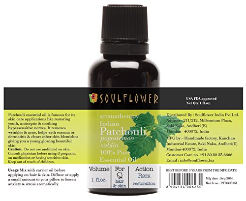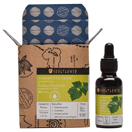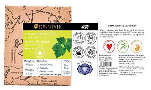Indian Patchouli Essential Oil by Soulflower|100% Pure, Organic, Therapeutic Grade Aromatherapy Oil | Restores Skin's Natural Glow, Fights Acne and Blemishes | Powerful Anti Wrinkle Action| 1 fl. oz