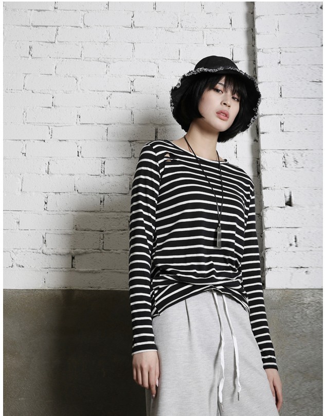 商品名:トップス レディース Tシャツ 長袖 ボーダー 春 2018 モード系 個性的 40代 ファッション