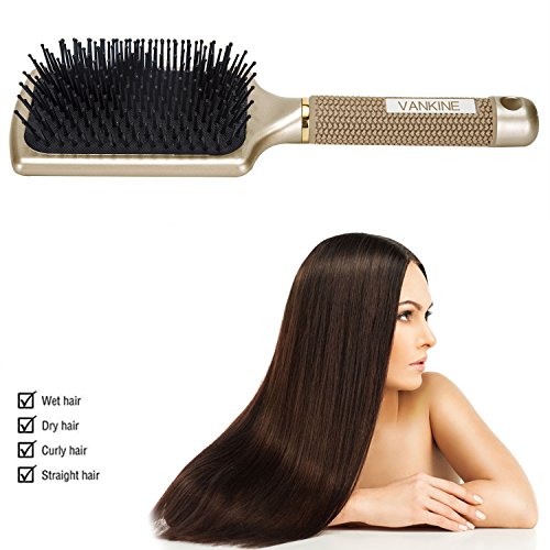 -. Binding : Misc. -. Brand : VANKINE -. EAN : 0759624226661 -. Feature : GOLD COLOR: Join the most popular color recent years. / COMFORTABLE GRIPS: The rubber material is nice to touch and offers a warmer feel than plastic. This grips help to reduce vibration, enabling a more comfortable and secure grip. It is pretty red and design for occidental palm. / SMOOTH THROUGH TANGLES IN A BREEZE: VANKINE Paddle & Detangler brush has a unique wide teeth design that detangles your hair smoothly. It can slide through even the curliest, most knotted up, gnarly hair gently, quickly and painlessly. For all hair types and it can be used on wet or dry hair. / STIMULATES AND MASSAGES SCALP THOROUGHLY: The extended nylon pinballs are great to massage and stimulate the scalps. This means it can replace your fingertips, if you are feeling lazy. Apply your preferable hair oil and move the brush on your scalp in circular motions. This would feel relaxing. Try castor oil! / THE VANKINE ADVANTAGE: If there are any problem with your VANKINE Paddle & Detangler brush within 12 months, return it, and we'll give 100% of your money. -. IsAdultProduct : 0 -. Label : VANKINE -. Manufacturer : VANKINE -. MPN : AB-169071 -. PackageQuantity : 1 -. PartNumber : AB-169071 -. ProductGroup : Beauty -. ProductTypeName : BEAUTY -. Publisher : VANKINE -. Studio : VANKINE -. Title : VANKINE Velvet Touch Paddle Brush Detangling Brush for Hair Straightening & Smoothing for Wet hair and Dry hair (GOLD) -. UPC : 759624226661