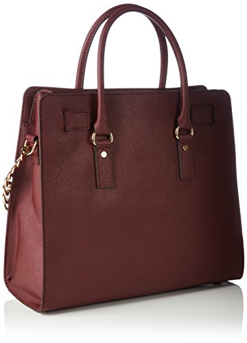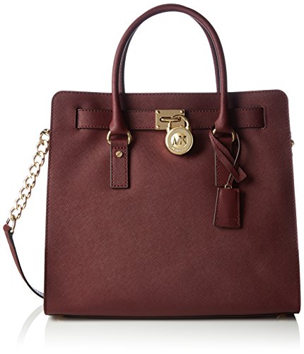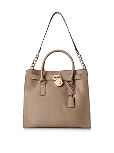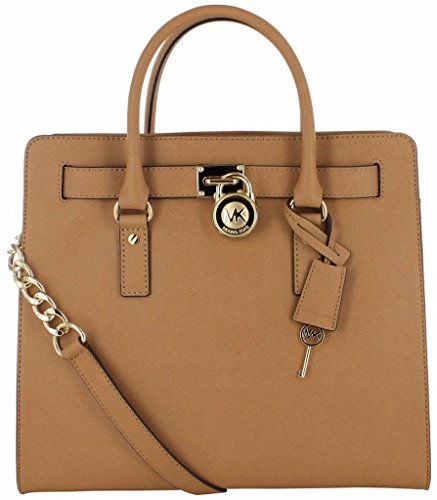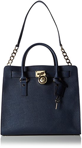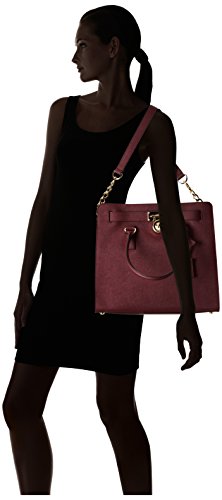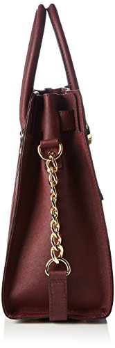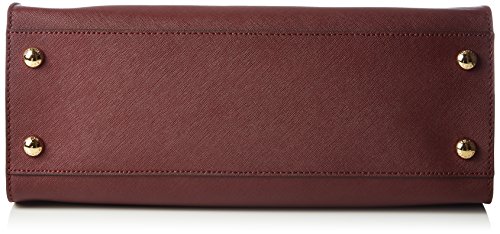 With plenty of pockets, this handbag carries your belongings in designer style. Bottom feet protect your bag, while decorative gold-tone hardware adds a luxe finish. 14-in. W x 13-in. H x 6.25-in. D Magnetic closure Interior: 2 front slip pockets, 2 back wall slip pockets, 1 back wall zip pocket Double top handles; shoulder strap with 14.5-in. drop Gold-tone hardware; self-color stitch trim LeatherFeature