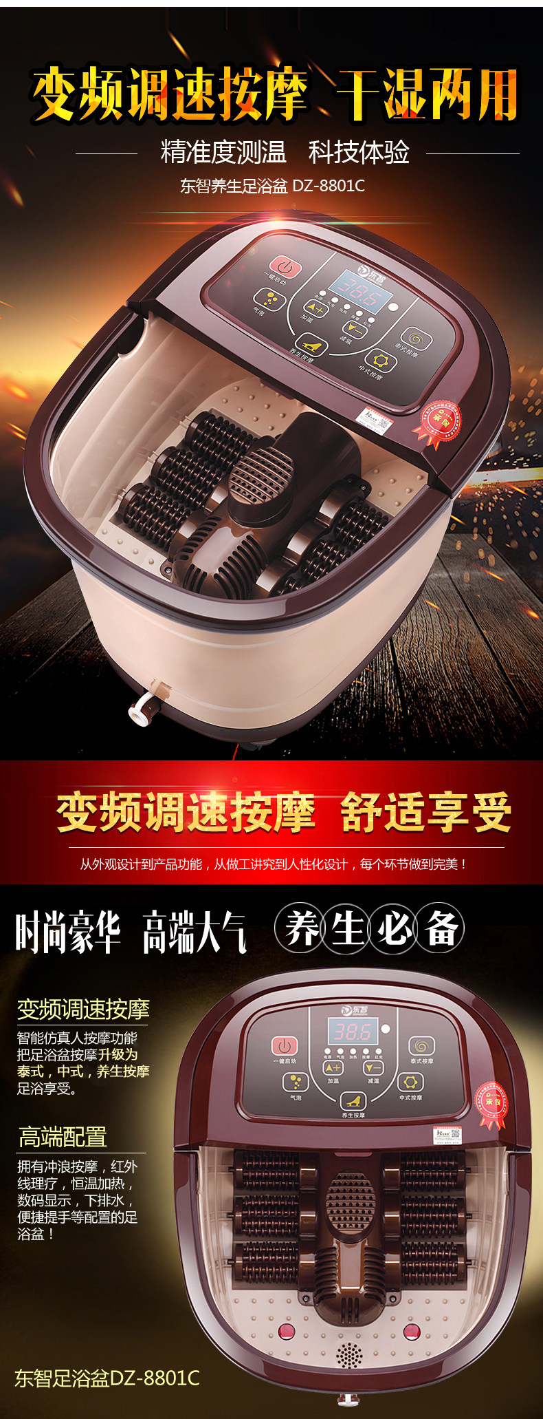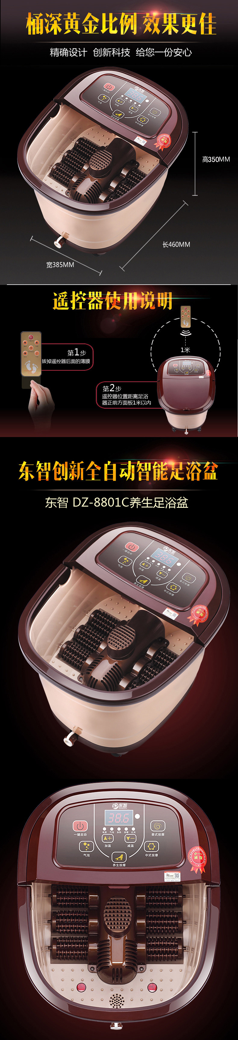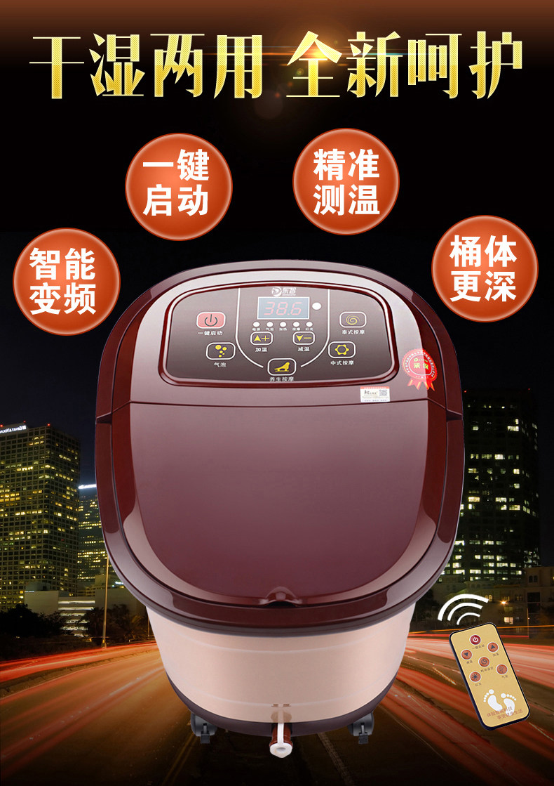 Function: variable-speed intelligent foot massage dry massage mode thermostatically controlled infrared wireless remote control LCD sterilization