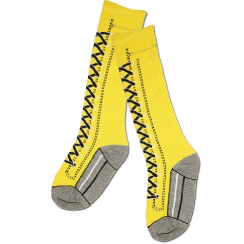 Fun knee high socks in bright colors and faux sneaker boots pattern